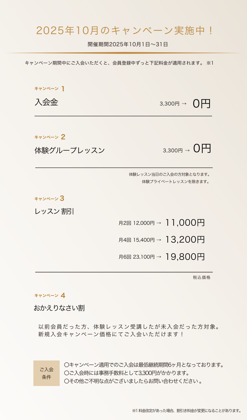 より満足していただくためのプログラムとして、プライベートレッスンを充実させております。マンツーマンの対応で個人様の癖や短所をさらにクローズアップすることにより、より効果的なレッスンをご提供することができます。グループでのレッスンが苦手な方や、より技術的に向上したい方にも好評をいただいております。