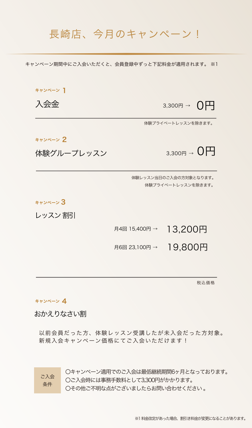 また、グループレッスンの参加につきましては、制限させていただく場合がございますので、その場合には公式LINEよりご相談ください。