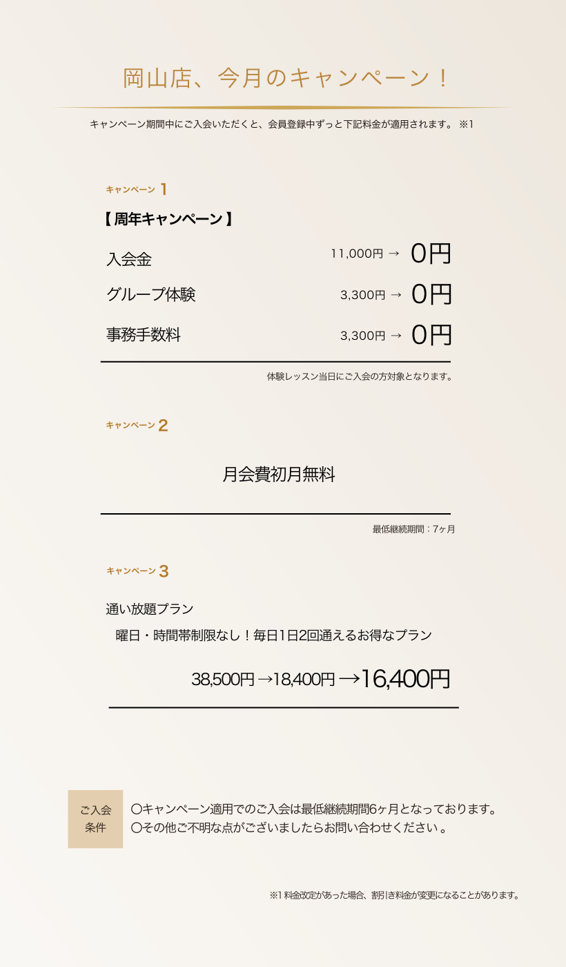 体験当日にご入会いただけますと各種キャンペーンがございます。